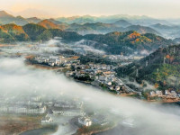 11月26日,歙县新安江山水画廊深渡镇日出云海景观,云雾如纱幔缠绕山峦与村落,江面波光与金色朝阳交辉,宛如仙境。