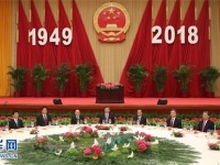 9月30日晚,国务院在人民大会堂举行国庆招待会,热烈庆祝中华人民共和国成立六十九周年。习近平、李克强、栗战书、汪洋、王沪宁、赵乐际、韩正、王岐山等党和国家领导人与120...