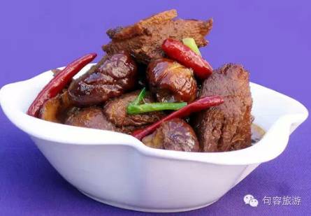 句容红烧老鹅本是一道农村家常菜,做法用料都是农村原汁原味的土方法,将四季鹅的肉同内脏、血子一锅红烧大煮,保持了原始的乡村风味,口感香辣劲猛,深受人们喜爱,而句容目前已形成了专业的农家乐餐饮村。