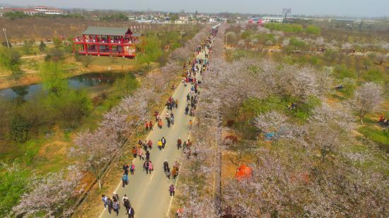 2016句容市第三届樱花节就在这样明媚温暖的春光中,迎来了数万游客。据了解,位于天王镇的浮山樱花园,是江苏最大的樱花种植基地,占地面积3000余亩,种植着包括东京樱、大岛樱、山樱、松月樱在内的十多个品种、约15万株樱花,每到三、四月间,纯白、粉红、淡黄、浅绿的花瓣绽放,高空拍摄之下宛如千层云浪随风涌动,赢得了“十万樱花海,浪天王镇”的嘉誉。