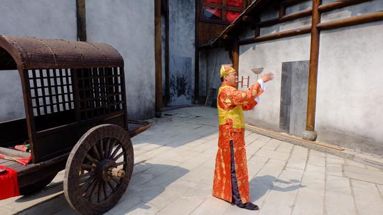 离开现代风格浓郁的白兔镇,记者团一行“穿越时空”,来到了宝华镇的千华古村,感受起明、清气息。粮油铺、茶叶铺、醋作坊、镖局、钱庄、戏台等错落有致地分布在村落中,历经2年大投入、快节奏、高强度建设的千华古村,正在浓浓的春意里迎接游客的光临。